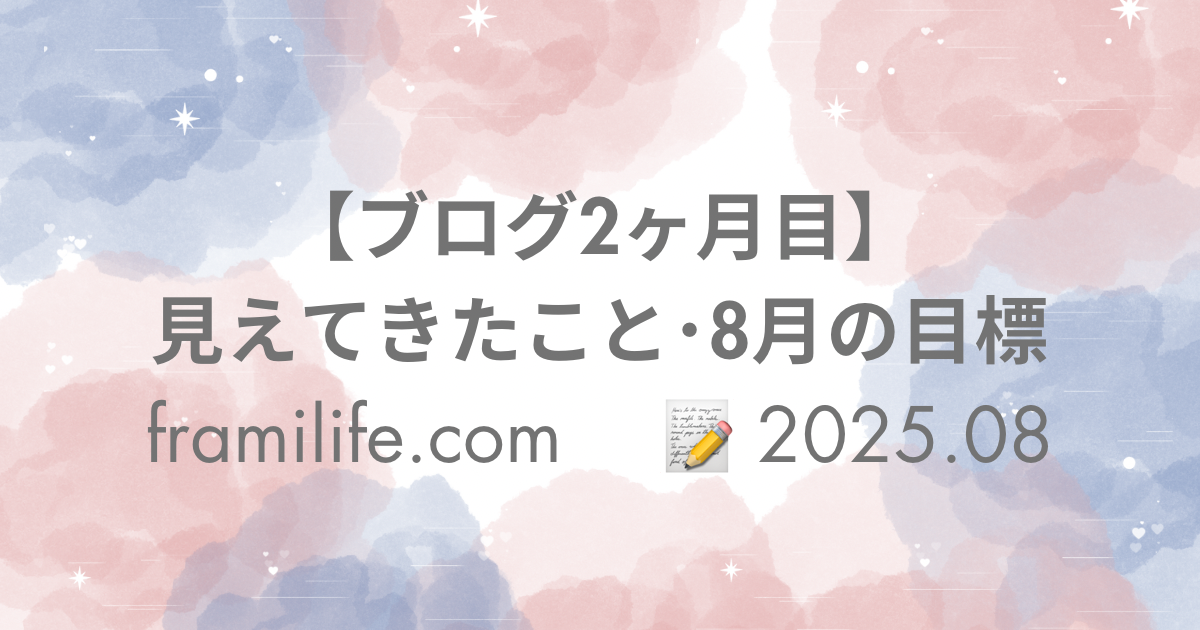 ブログ運営 【ブログ2ヶ月目】8月の目標・やることリストと正直な気持ち ブログ開始から2ヶ月。今までの経緯、悩んだり考えていること、8月の目標・やることリスト、を本音でまとめました。初心者ブロガーのリアルな運営記録です。 2025.08.06 ブログ運営