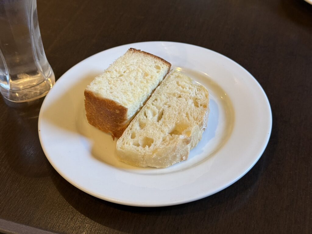 パスタを頼むと、パンが2種類も付いてきます。