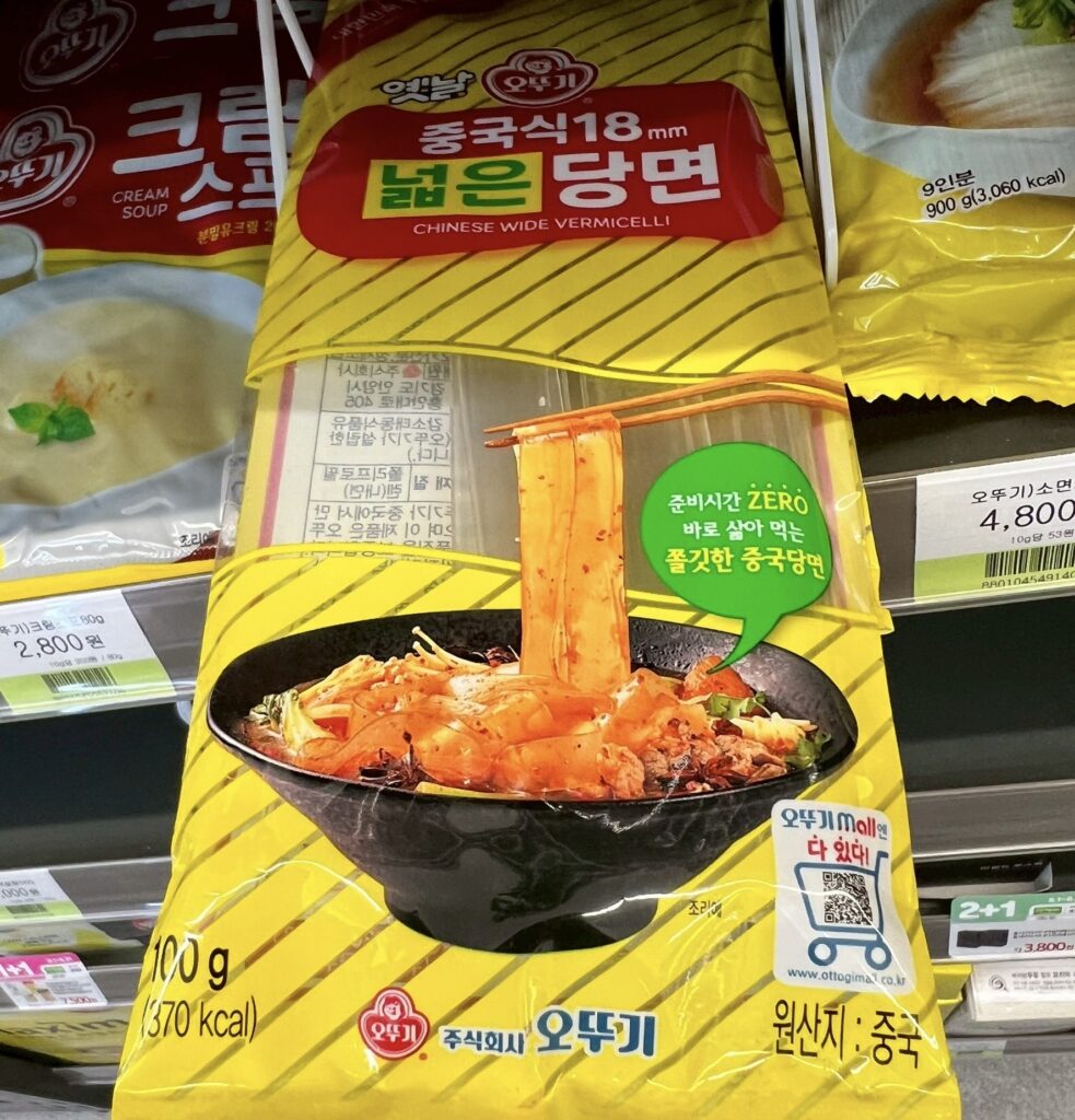 麻辣湯やお鍋などに入れると美味しい、モチモチの平べったい春雨。