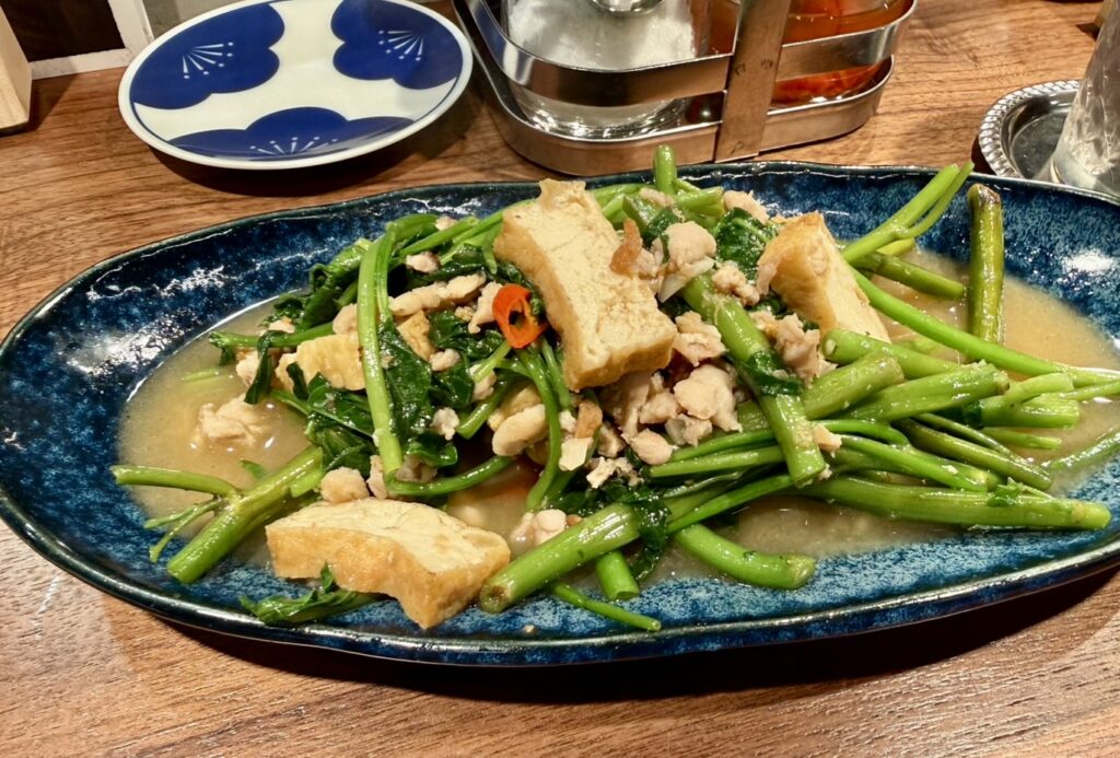 シャキシャキで美味しい空芯菜炒め。