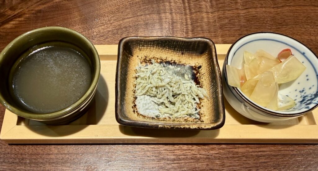 まず、お通しが出ました。量は一口程度。